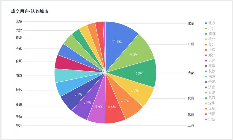 《2021年重点城市Q1购房观察》显示,在成交用户中,位于北京的人群最多,占比达到11.3%,广州以9.3%的占比紧跟其后。值得一提的事,素有“天府之国”、“上有天堂、下有苏杭”美称的新一线城市成都、杭州和苏州挤进前五,超过一线城市上海的人数占比。而在一季度成交用户中,3月份认购的用户最多,达39.9%,其次有38.6%的人群选在1月份认购。