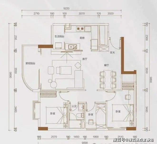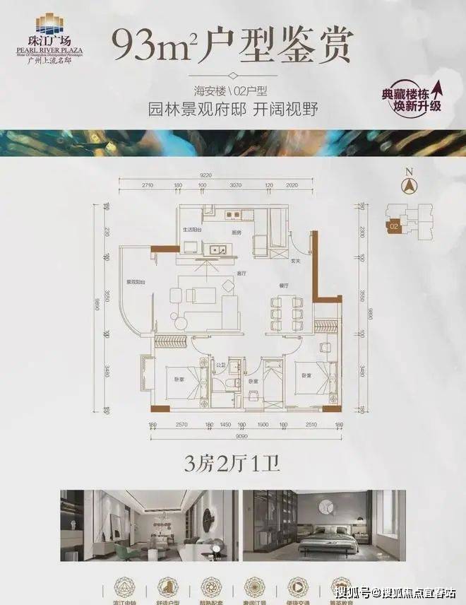 建面约93㎡园景户型,看中庭中央园林,阳台约180米宽楼距阔景园林