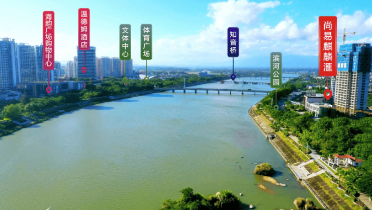 ②项目西南方向享文体广场、椰林大桥及网红知音桥景观;