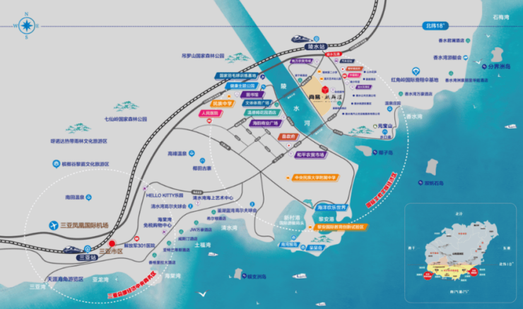 海南主要旅游资源分布海南东南部的各大湾区,陵水是东南部的中心位置,仅陵水区域内拥有清水湾、香水湾、土福湾三大湾区,占海南成熟旅游资源的半壁江山。