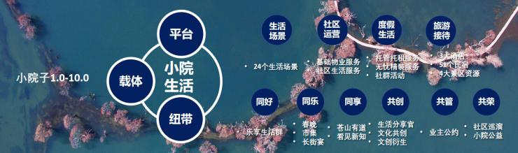 在第三个阶段,大理的小院子思考的问题是用户真正要承载的是什么?经过整个团队的探索和调研,最终明确重心还是在于生活,生活是核心,而建筑只是生活的一个载体,一个空间,小院子核心要输出的还是大理的人文。所以我们将大理的小院子的社群升级迭代,以建筑为载体,以价值观为纽带,以运营为平台,为业主和社群构建24个生活场景,提供了社区运营、度假生活、旅游接待等多维度的服务,与业主、社群成员共同打造大理的小院子“同好、同乐、同享”的社群生活,以及“共创、共管、公荣”的社群文化。