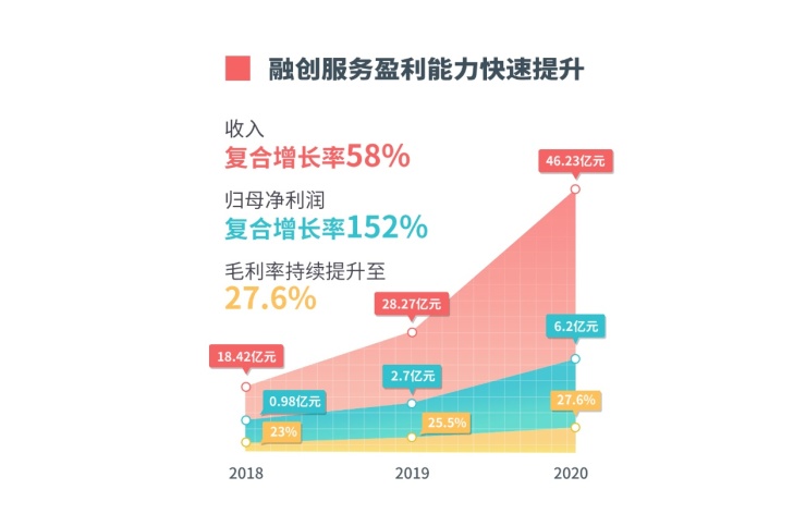 去年11月,融创服务成功登陆港交所。上市首年,融创服务的营业收入即达46.23亿元,同比大增63.5%,三年复合增长率达58%;归母净利润达6.20亿元,同比增长129.6%,三年复合增长率达152%。