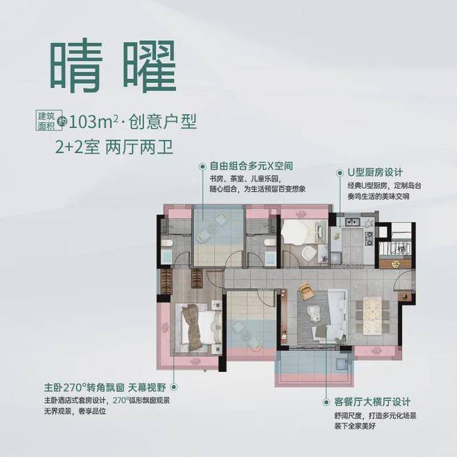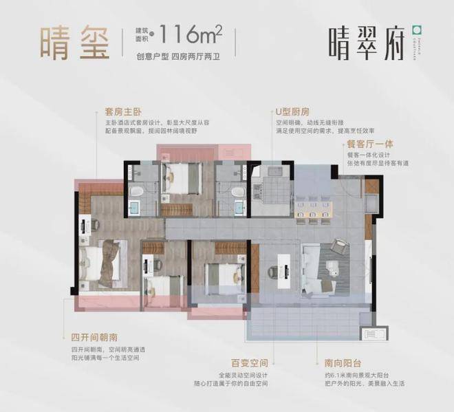 卓越·晴翠府,坐落于广州城市主轴之上,是卓越集团匠心打造的又一高端力作。项目总占地约14万㎡,集住宅、商业、会所于一体,旨在为城市精英提供一个集品质生活与社交享受于一体的理想居所。项目以“瑰丽生活享受”为核心理念,精心规划了建面约103-130㎡的三至四房宽景臻品,满足不同家庭的居住需求。