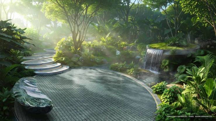 ·空气净化与负氧离子提升:利用特定植物与生态水景的组合,结合“森环系统”,显著提升园区负氧离子浓度,营造天然氧吧环境。