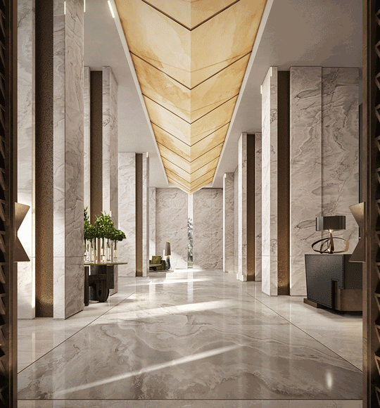 在归家动线上融入芬芳绿意,让人仿佛步入顶奢酒店,获得城市核心最珍贵的松弛感。