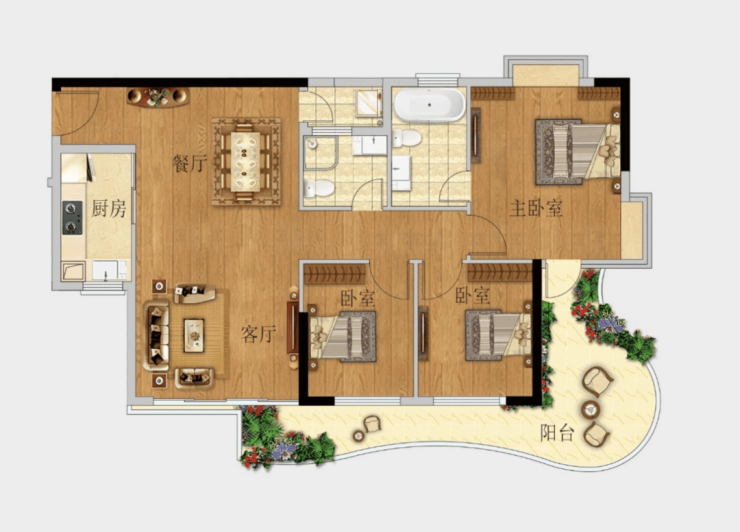 🅣🅞🅟02户型【95㎡3房2卫】东南向望江