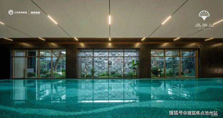 同样取意苏式园林的借景手法,比如恒温泳池就通过借景手法,透过巨幅落地玻璃,人在池中仿佛游于画中~