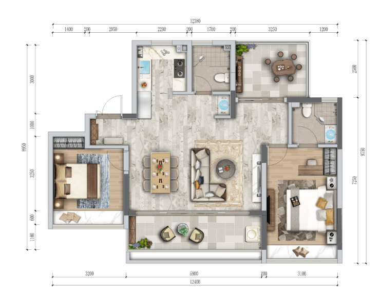 🌴【阔境美宅:三室两厅两卫 建面约103-105㎡】