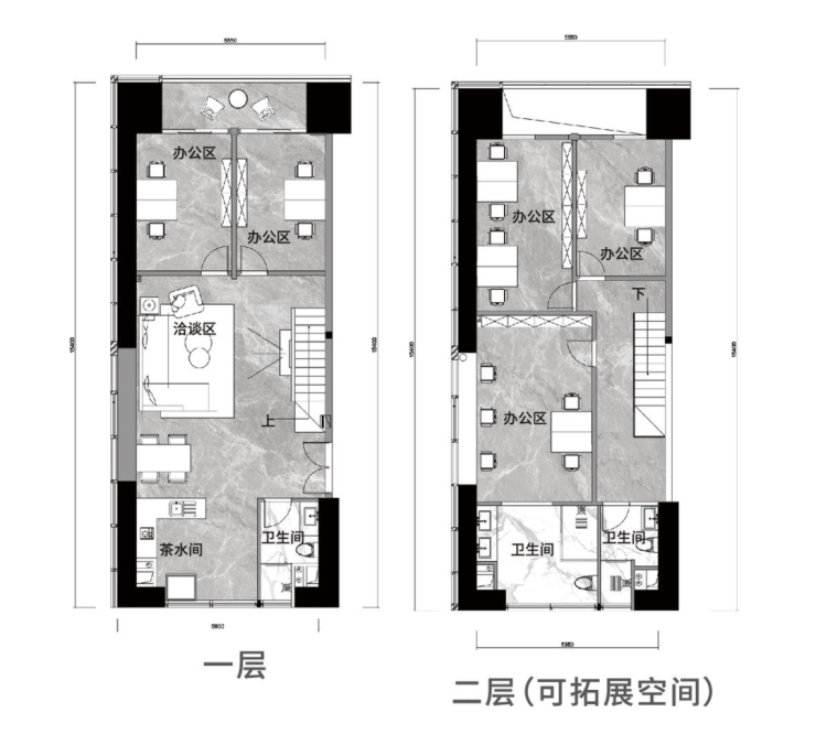 📐层高:LOFT层高5.45米,SOHO层高3.5米,写字楼层高4.2米