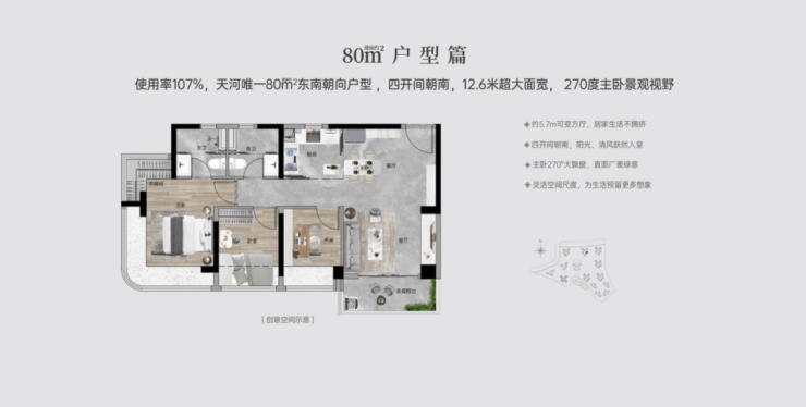 南向大面宽采光,主卧270°弧形飘窗瞰山景,打造自然宜居新场景
