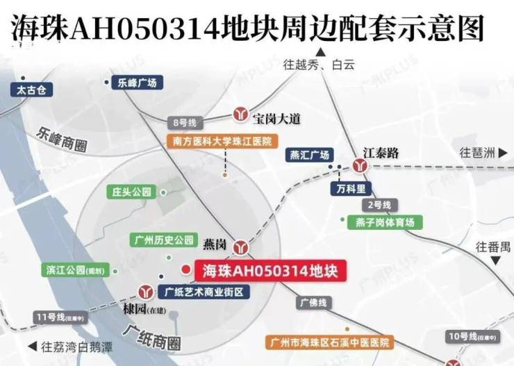 周边拥有双地铁:“换乘之王”广佛线燕岗站约400m(百度地图直线距离),广州首条黄金环城线11号线棣园站约250m(百度地图直线距离),直接打通琶洲、天河、海珠西和荔湾等区域,业主去哪都方便,7站南站、7站琶洲,轻松链接全城,虹吸广佛优质资源。