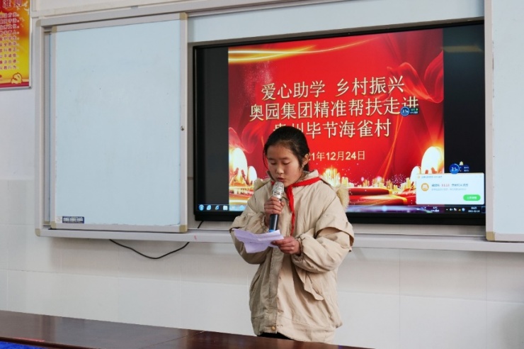 一直以来,奥园集团积极贯彻党中央精准扶贫和乡村振兴战略部署。乡村振兴,教育先行。除了海雀小学,奥园还结对帮扶毕节威宁县可界村以及遵义娄山关红军小学、威宁施家营小学、威宁雄英小学等学校,以及100名贫困大学生完成大学学业。