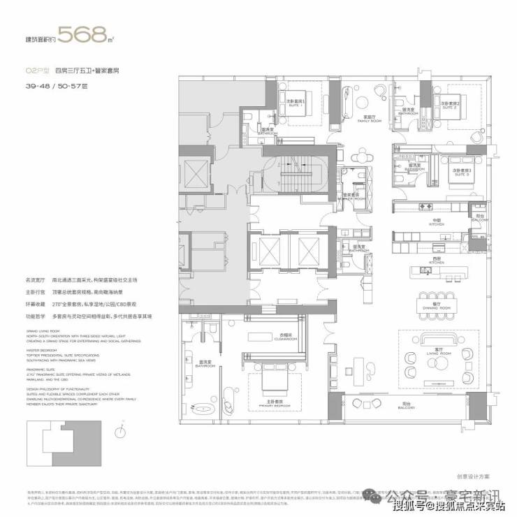 值得一提的是,除了上面三个主力户型,项目还推售约568㎡以及顶层约1000㎡产品,满足塔尖客群的所有期待。