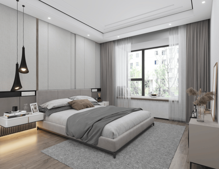 双套房设计,主卧带卫生间+衣帽间,次卧带衣帽间+飘窗,让两代家庭都能拥有自己的私密空间。