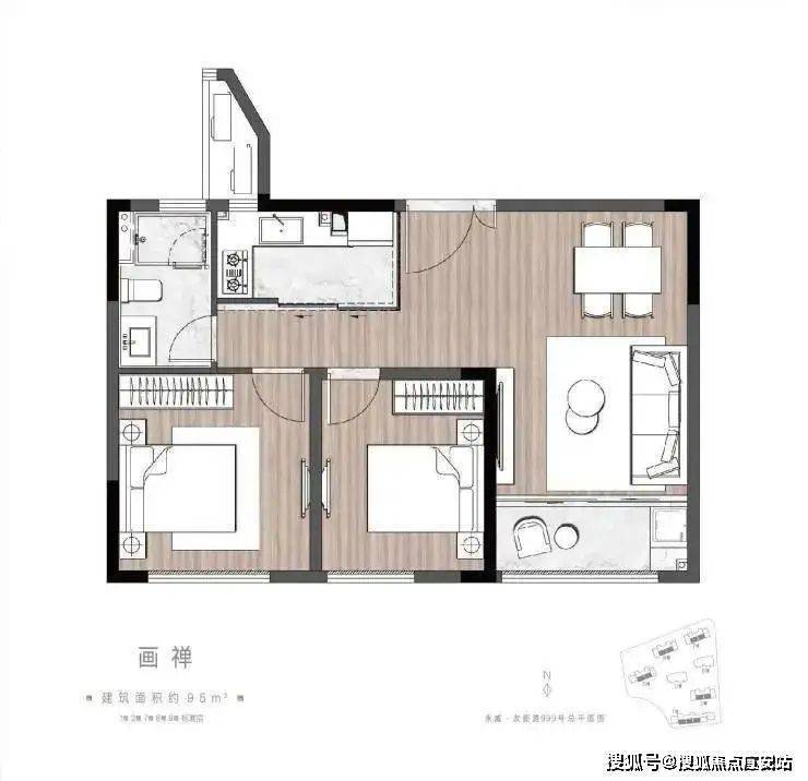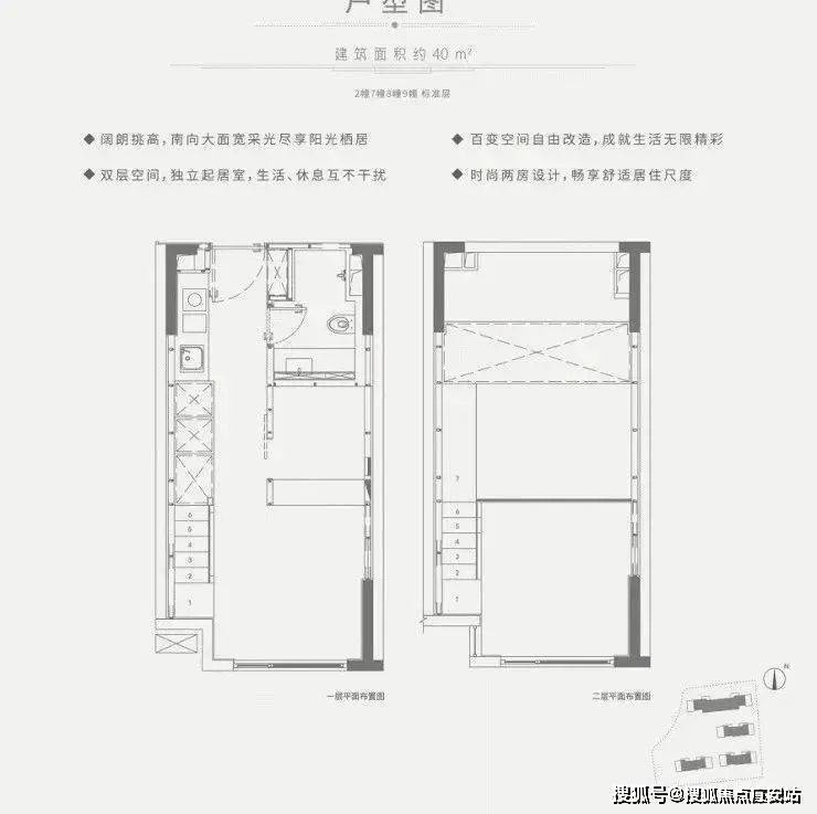 公寓户型:有 42㎡、50㎡(两室一厅一卫)、95㎡、120㎡等户型,2 梯 10 户或 2 梯 16 户,挑高 3.87 米。