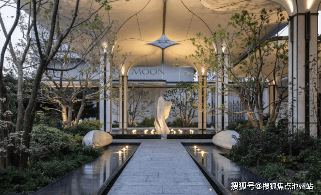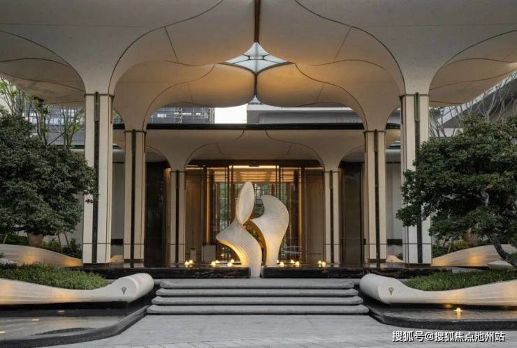 建筑立面以香槟金金属线条勾勒轮廓,在光线下流淌出琥珀般温润光泽。这一暖色系的介入,既延续了“月华系”的现代基因,亦赋予建筑罕见的亲昵感。