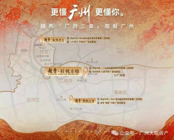 作为“广府系”第三子,越秀桂悦东晓在地段、景观和产品上,都具有很鲜明的本土特色。