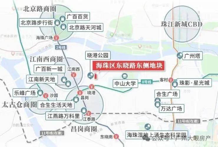 距离地铁8号线晓港地铁站仅0.6km,8号线可以直达琶洲、客村等商务圈,一站到昌岗可以换乘2号线,到南站、白云新城也比较方便,三站客村换乘3号线,到珠江新城、体育西路,能实现40min内通勤。
