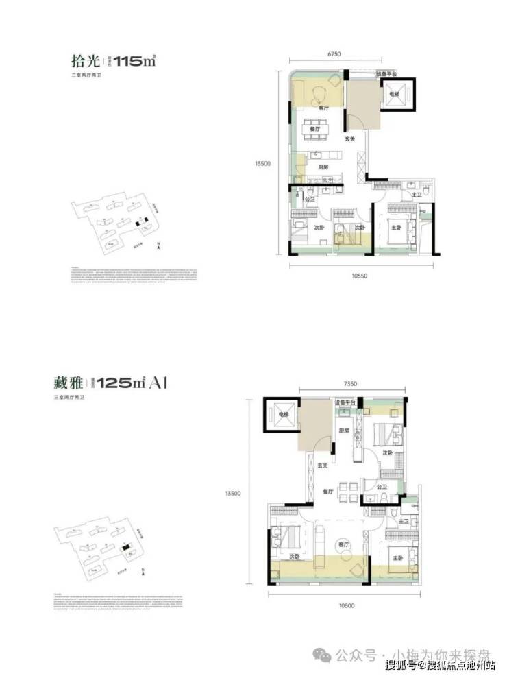 小梅跟项目了解到,目前项目释放出两种面积段的户型图,首开1号楼,总层高21层,2T2户(独户设计)一个是115户型125户型都是三房的户型,四代住宅。115户型得房率98%左右,125户型得房率95%左右。