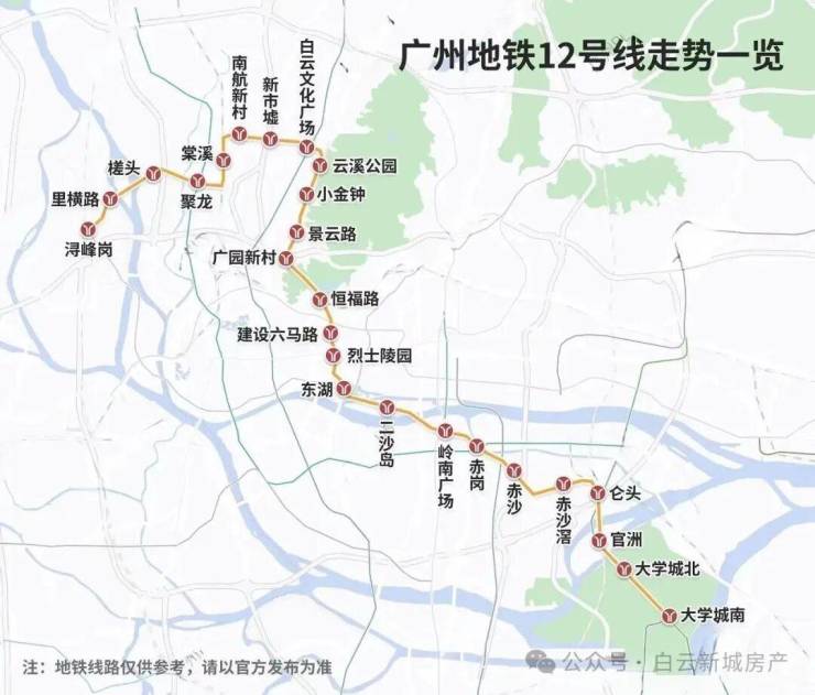 12号线(预计2024年通车)-广州换乘之王,广州市第一条无人驾驶地铁线路,与十数条轨道线无缝换乘,共经过白云文化广场、烈士陵园、二沙岛、赤沙等17个换乘站,可直达大学城,连通白云、越秀、海珠、番禺四大区域。