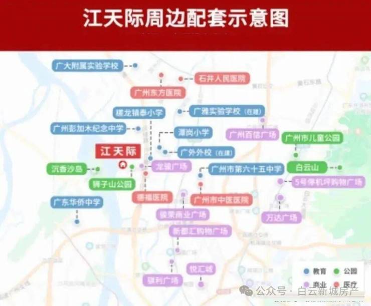 白云广雅实验学校、广大附属实验学校、第65中学(省一级)、槎龙镇泰小学(区一级)。家门口幼儿园到中学的12年优质教育,配套3所幼儿园,一所54班9年一贯制公办优质学校。目前项目周边,教育方面并不特出,规划的学校还没有确定是什么教育集团进驻。
