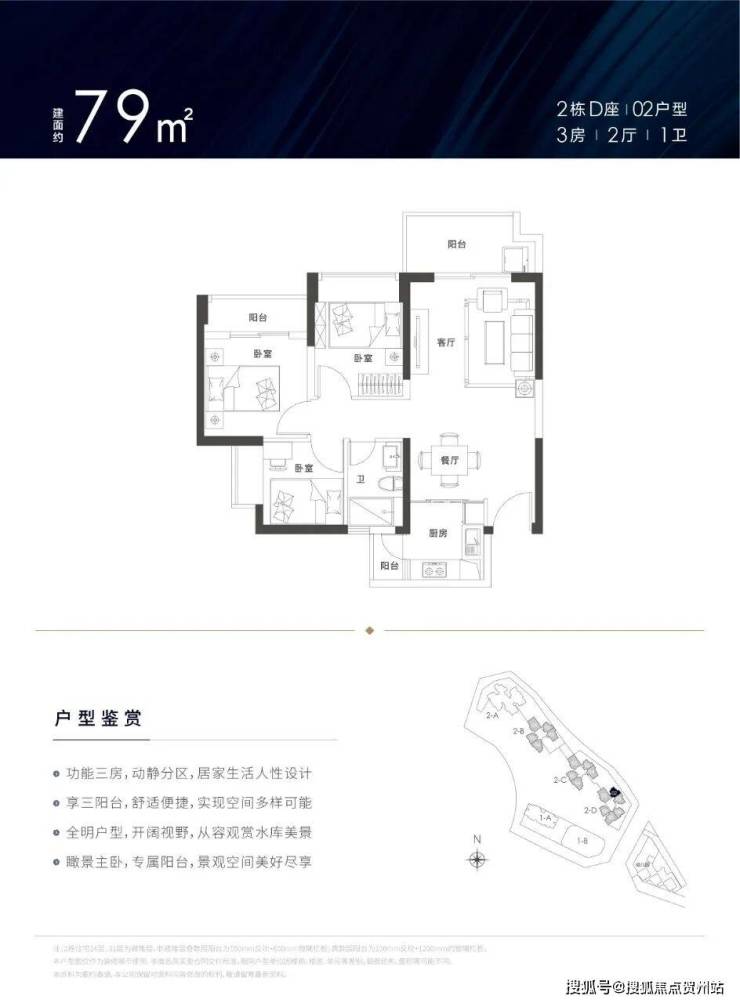 建面约79-129㎡3-4房户型,南北通透,3房3.5~3.7m,4房3.8~4.2m,罕见阔绰开间,客厅、厨房、卧室三阳台多飘窗,超高使用率。