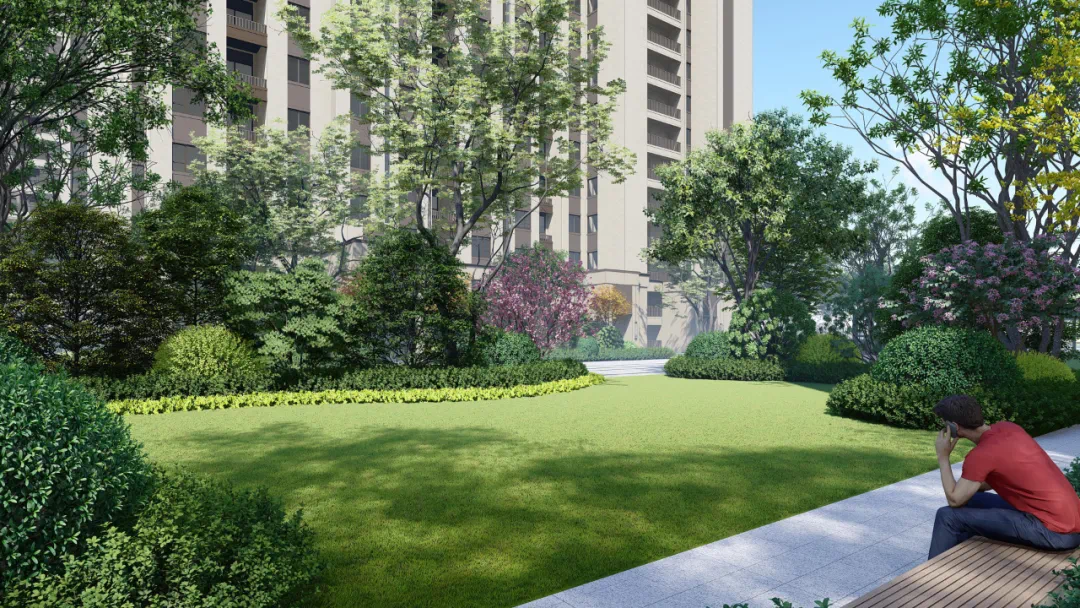 中梁龙玺台在景观设计上采用的是一环两轴七空间的设计理念,在地块中心打造中央景观花园,并通过各个景观节点,实现景观空间的收放自如,营造出丰富的景观视觉效果,处处如花园,四季皆美景。