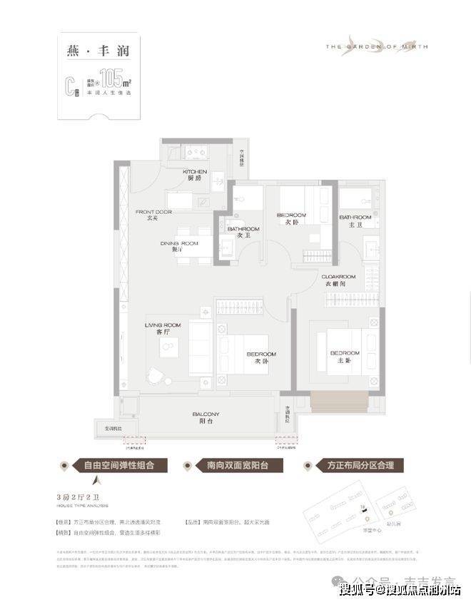 ◆C户型-105㎡-3房2厅2卫◆