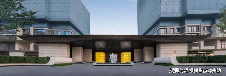 四向归家的大门设计,打破了常规楼盘至多两个入口的局限,让出入更加自由,生活动线也更符合日常需求。整体抬地5.4米的设计,不仅抬高了地势,同时将不利设施巧妙隐藏,更塑造了归家的仪式感。南向主入口以玉琮造型石柱、铝板挑檐和汉白玉雕塑营造出温润如玉的入口氛围,同时配备无障碍平接设计和多类电梯,确保每一次归家都顺畅便捷。