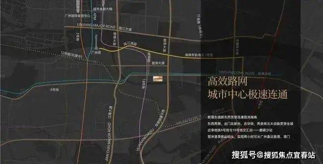 地理位置:琶洲西区核心,紧邻磨碟沙地铁站(8号线与18号线交汇,步行200米),南向一线珠江景观,北接新港东路,坐拥“琶洲CBD+珠江新城+金融城”黄金三角核心区位。
