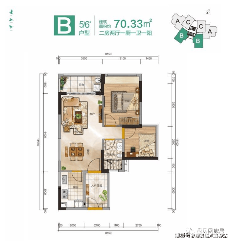 B户型(5#6#):两房两厅