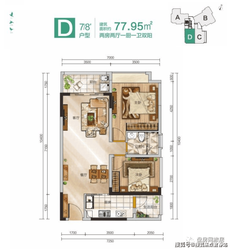 D户型(7#8#):两房两厅