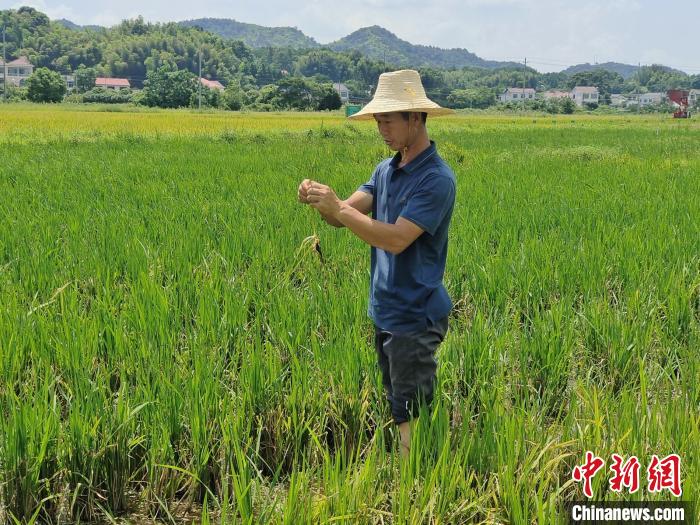午后,热浪袭人,一群白鹭在湖南长沙县金井镇湘丰村稻渔鸭有机综合循环生态种养示范基地嬉戏。皮肤黝黑的基地主人戴智勇头戴草帽、挽起裤管正在田间察看水稻生长情况。
