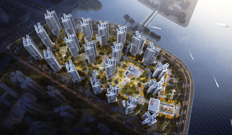 从效果图来看,项目采用东低西高、围合式的布局,最大化利用双面海景的地段优势,东面和北面均可看狮子洋,景观面十分宽阔。