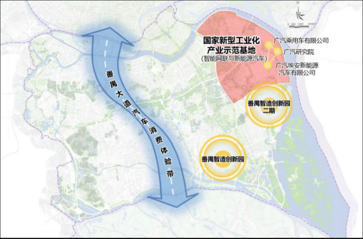 汽车城则以广汽乘用车、广汽埃安等整车制造企业为龙头,已建成年产量75万辆的产能规模。