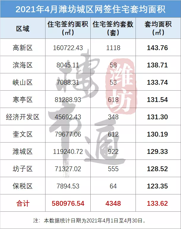 下面是2021年4月潍坊城区网签数据一览。