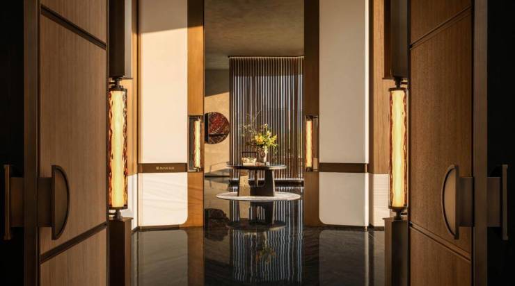 室内由 CCD(郑中设计事务所)打造,凸显了现代奢华和品味的精髓,从高档材料的运用到开放式的空间布局,全屋奢石通铺,入户门厅匹配的是纹理低调的超白洞石搭配定制尺寸卡门,一眼看去,安全感满满。进门后,意大利进口石材全屋通铺,每一处地砖流水型纹路都能对应,需要提前至少2年预定的梅西同款进口芬迪白石材被用作电视背景墙,阔绰感不言而喻。