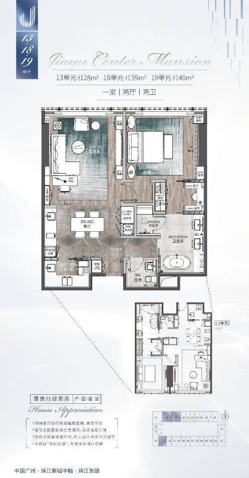 【项目名称】:嘉裕中心•J公馆【项目位置】:广州市天河区珠江东路18号【总占地面积】:约128000方【总建筑面积】:约189000方【总规划】:顶级酒店+酒店行政公馆+甲级商务+高端商业(共46层)1-14层:甲级商务写字楼、精奢商业、高端影视会所15层:高端私人酒店会所28-46层:JW万豪酒店【车位数】:807户【梯户比】:7梯27户【产权】:50年【在售面积】:69~180m²【物业费】:12元/元/方