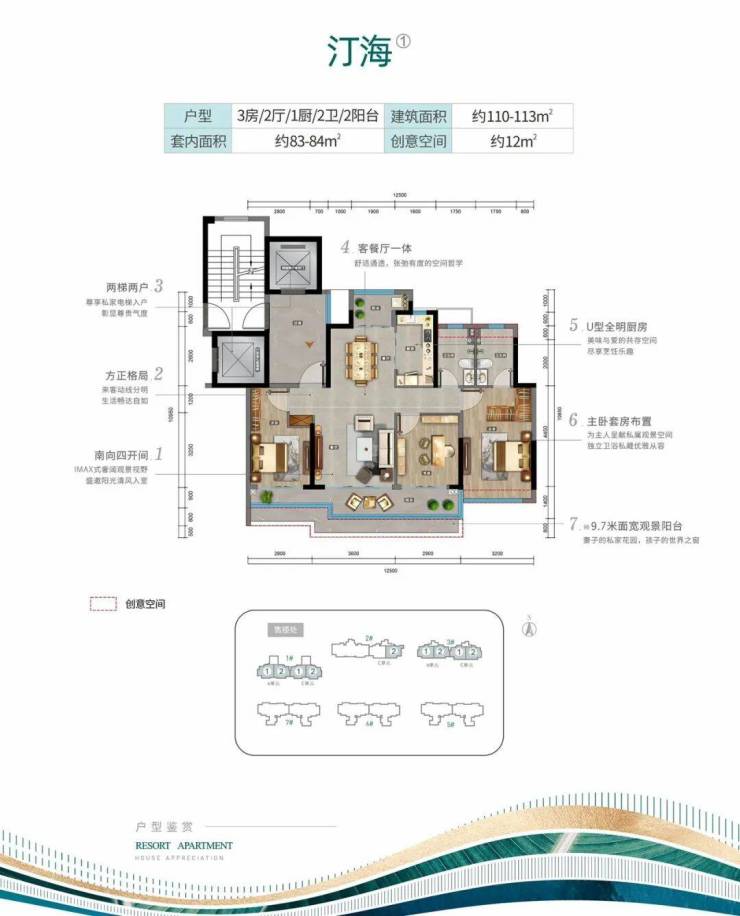 汀海建面约110-113㎡户型图及样板间照片