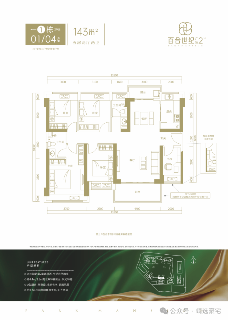 【产品面积】主力产品 建面约 98-143 ㎡ 3-5房(一期 174 ㎡阔绰 5 房热售中)