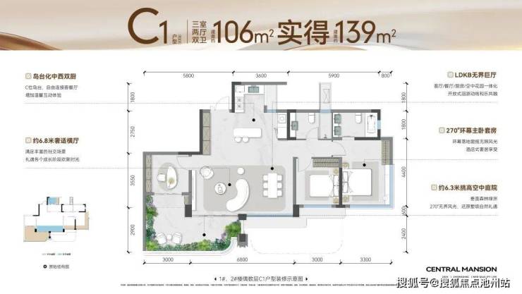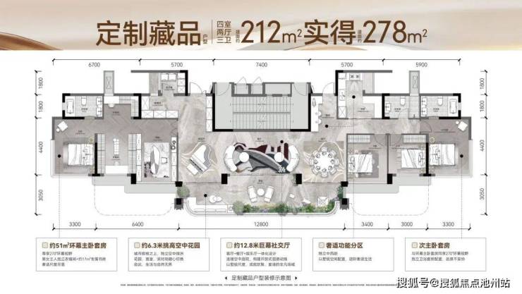另外,购房人还可以将同一楼层两套106平米户型打通,变成实得建面约278平米的超奢大宅。