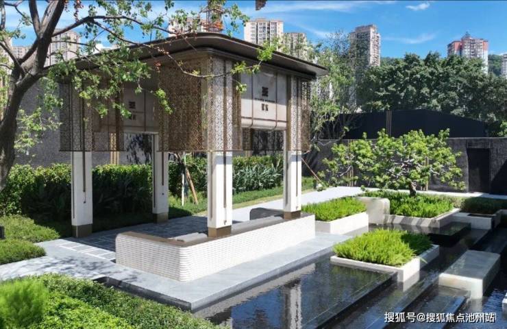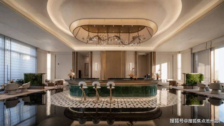 比如示范区呈现的鎏光水院,多重绿植的自然美,多重水景的灵动美,庭院建筑的质感美,在这里相得益彰,为业主带来了高品质的休闲社交场所。