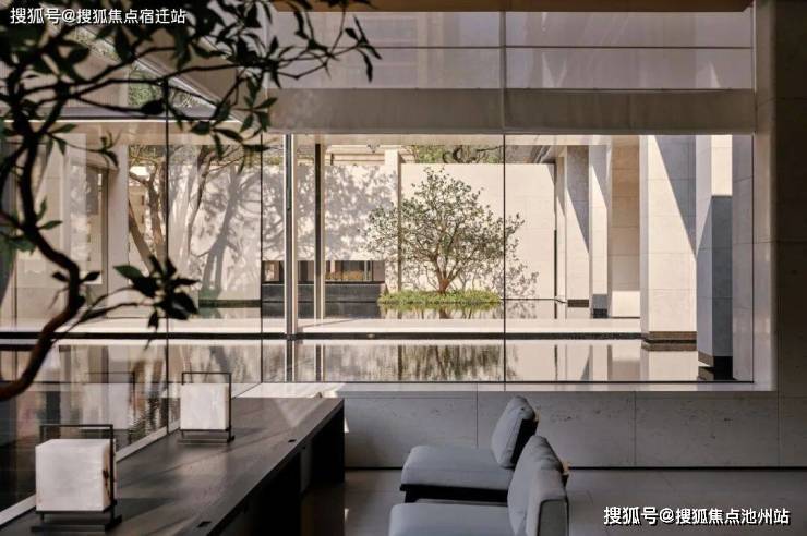 建筑、回廊、树丛仿佛都漂浮水上,叫人想起那句“美人在骨不在皮”的俗语,无需花哨粉饰,只以大尺度空间、平铺水院、大幅玻璃为画布,由得自然光信笔创作,这才是骨子里的性感。