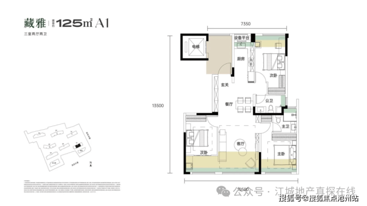 带独立电梯前室,3个卧室朝南,餐客厅一体全景舱设计,270°采光视野。