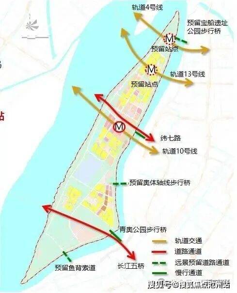城市生态交通体系,构建1条空中走廊、3座步行桥、3条车行道、5线轨交多样化进出岛路径。