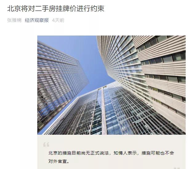 前几天,某个财经网站提到,“北京将很快对二手房挂牌价格进行约束”。