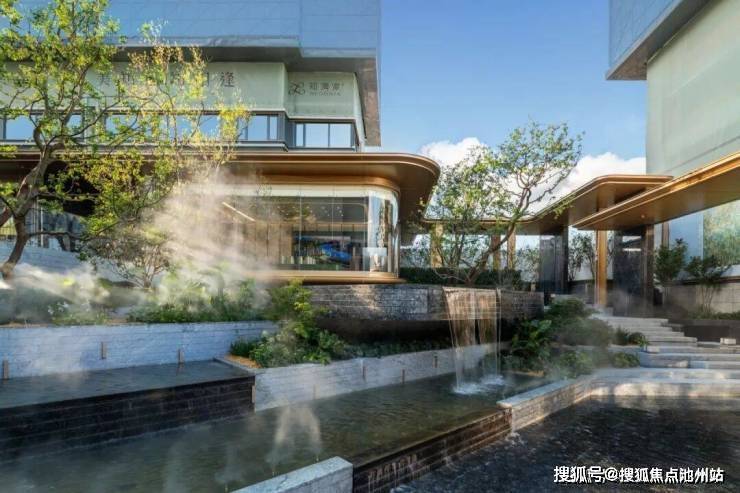 漫步知海棠示范区,从大门入口开始,空间序列徐徐展开,穿过超52米跨度的回字形布局大门,沿着台地住区缓缓而上,“西湖十景”灵感的立体山水之境渐次展开,形成拾级而上、步步生景的沉浸式体验,仿佛置身一座悬浮于空中的绿洲,每一步都是风景,每一眼皆为诗意。