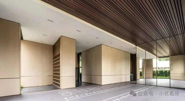 肯定会有人好奇,为何保利不直接使用木饰面?这里,我们可以留意铝板的使用场景:架空层四周没有墙壁保护,日常必须面对风吹雨打,木板很难抵御侵蚀,铝板却能历久弥新。并且,仿木纹铝板拥有与天然木材几乎一致的肌理,在室外也能展示出柔和质感。