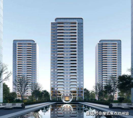 外立面采用金色铝板+玻璃设计,蓝宝石水系等豪宅级配置