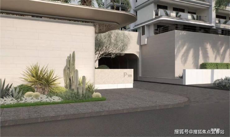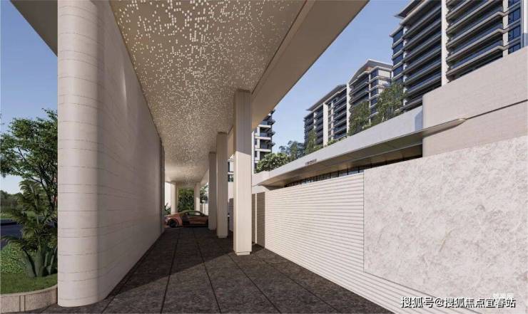 •一进:酒店式归家 | 近 70 米长弧形落客门廊,围合仪式感入口前院